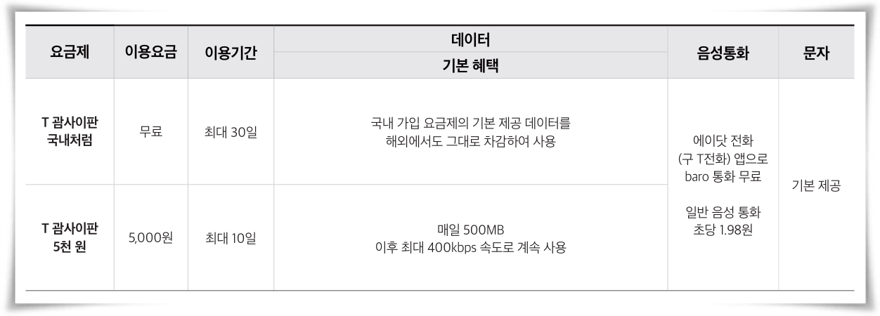 ※ 기본형에 가입하시면 출국 시마다 요금제가 자동 적용되므로 매번 가입할 필요가 없습니다.