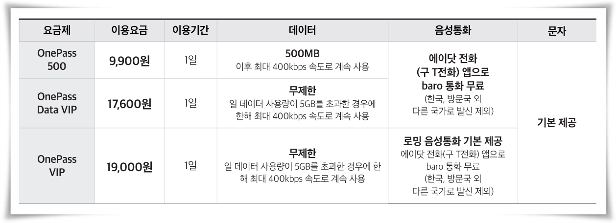 OnePass 500 요금제 - 1일 9,900