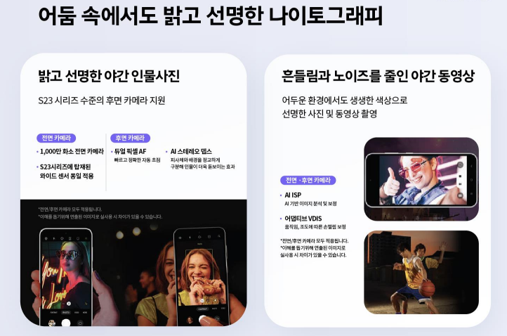- S23시리즈 수준의 후면카메라 지원