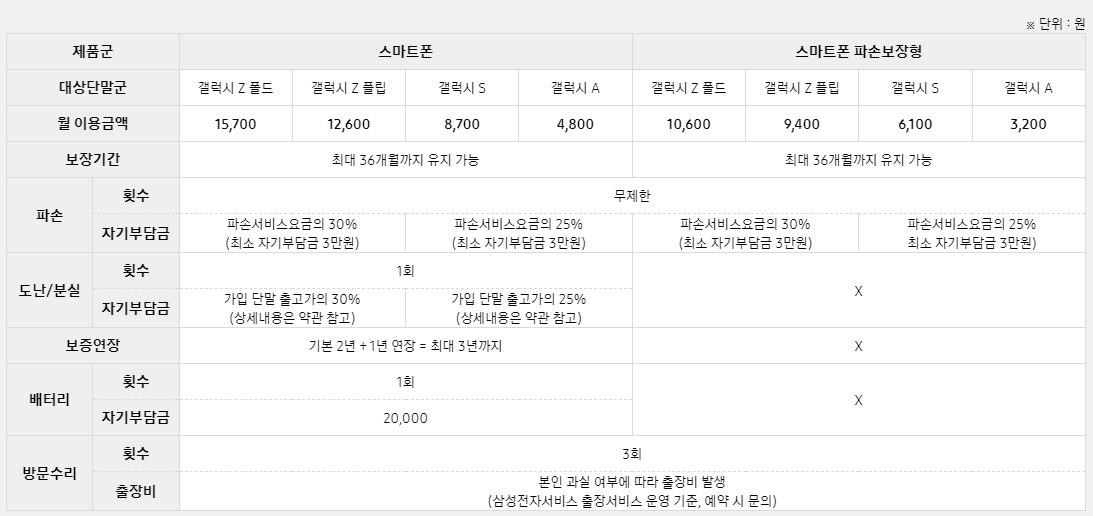 3. 삼성케어플러스 이용 요금