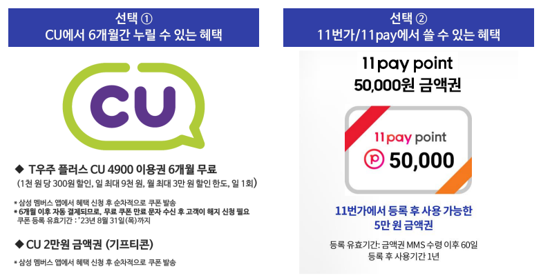 - 선택형(1,2 택1) CU팩 or SK Pay 포인트 5만원