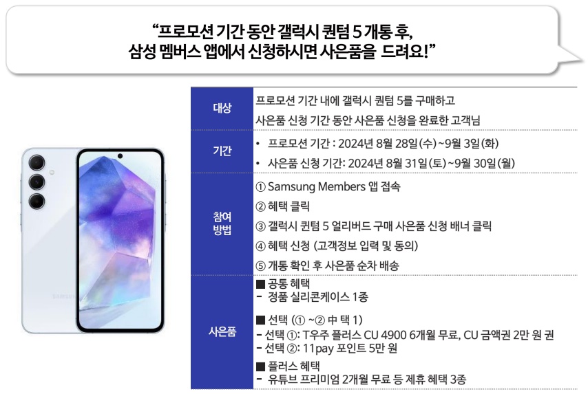 ■ 기간 : 8월 28일 ~ 9월 3일 개통 고객