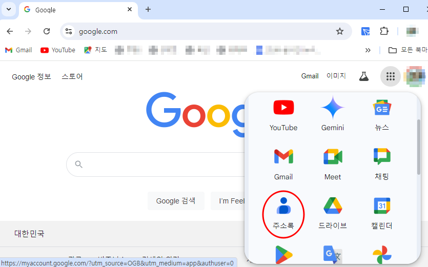 1. Google 접속후 앱스(오른쪽 상단) 선택